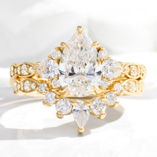 Peyton- 1.20 CT Pear Moissanite Pave Bridal Ring Set