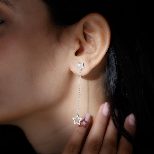 Emery- 0.60 TCW Round Star Chain Dangle Moissanite Earrings
