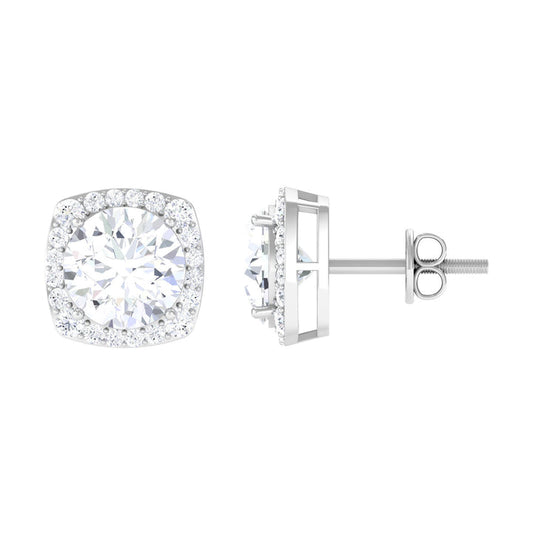 Valerie- 1.10 TCW Round Halo Moissanite Earrings