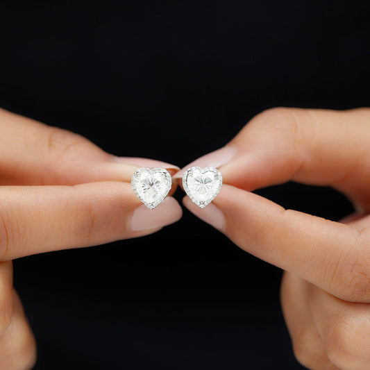Clara- 2.0 TCW Heart Halo Moissanite Earrings