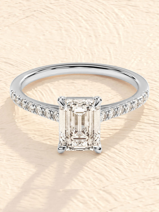 Pamela- 3.5 CT Emerald Halo Pave Moissanite Ring