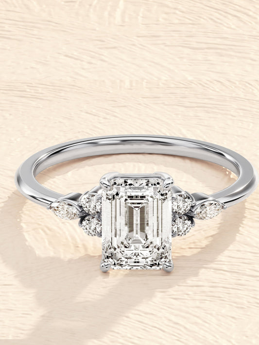 Catherine- 1.50 CT Emerald Cluster Moissanite Ring