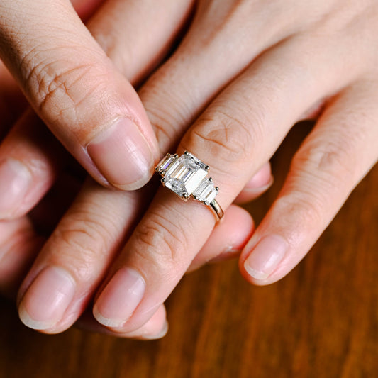 2.5 CT Emerald Cut Five Stone Moissanite Engagement Ring