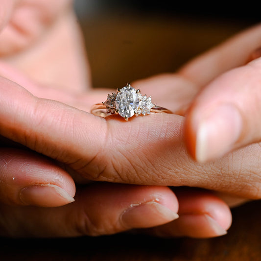 2.0 CT Oval Cut Cluster Moissanite Engagement Ring