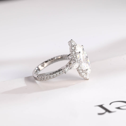 3.5 CT Emerald Cut Hidden Halo Moissanite Engagement Ring