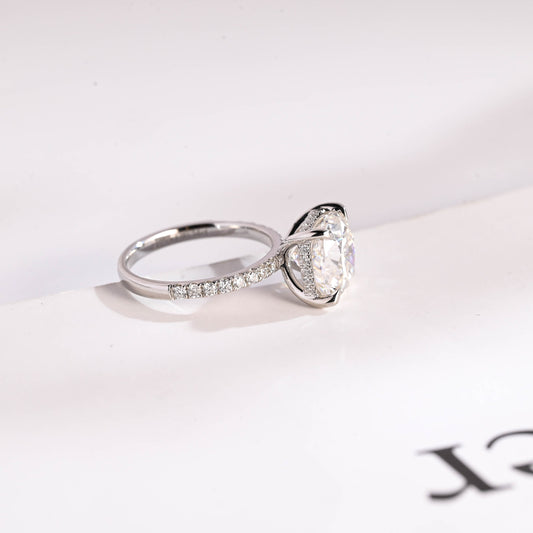 1.0 CT Oval Cut Double Hidden Halo Moissanite Engagement Ring