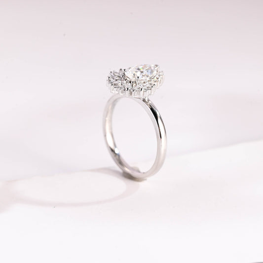 1.25 CT Pear Cut Halo Moissanite Engagement Ring