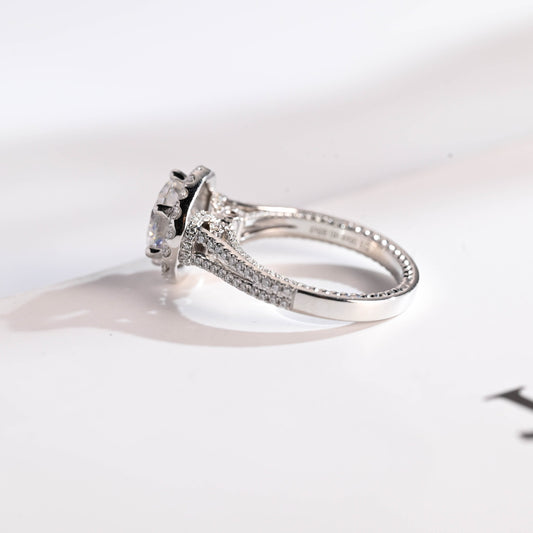 2.5 CT Oval Cut Pave & Halo Moissanite Engagement Ring
