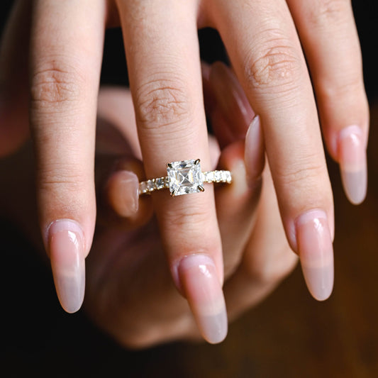 3.0 CT Asscher Cut Pave Moissanite Engagement Ring