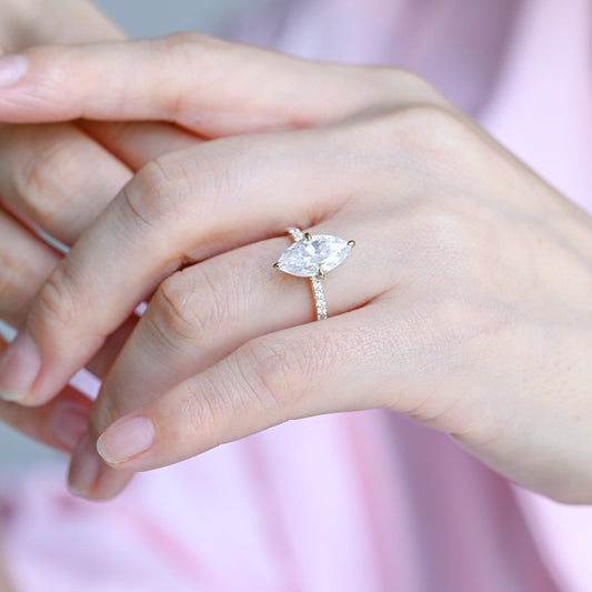 3.0 CT Marquise Cut Pave Moissanite Engagement Ring