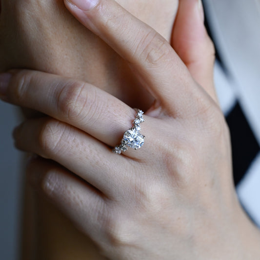 1.5 CT Round Cut Cluster Moissanite Engagement Ring