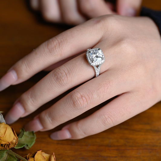 3.5 CT Cushion Cut Halo Moissanite Engagement Ring
