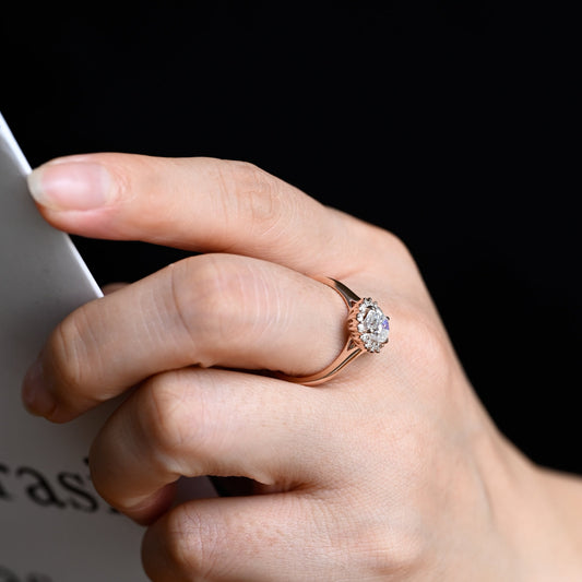 2.0 CT Oval Cut Halo Moissanite Engagement Ring