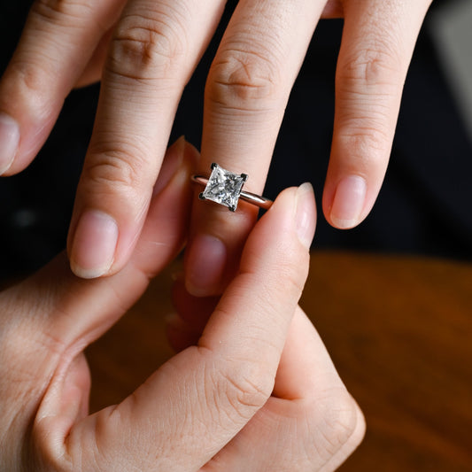 2.5 CT Princess Cut Solitaire Moissanite Engagement Ring