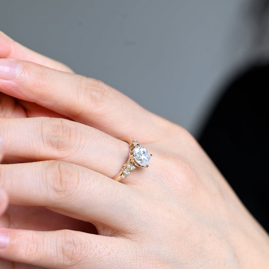 2.5 CT Oval Cut Cluster Moissanite Engagement Ring