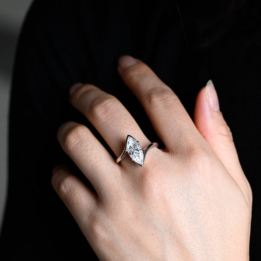 3.0 CT Marquise Cut Swirl Moissanite Engagement Ring