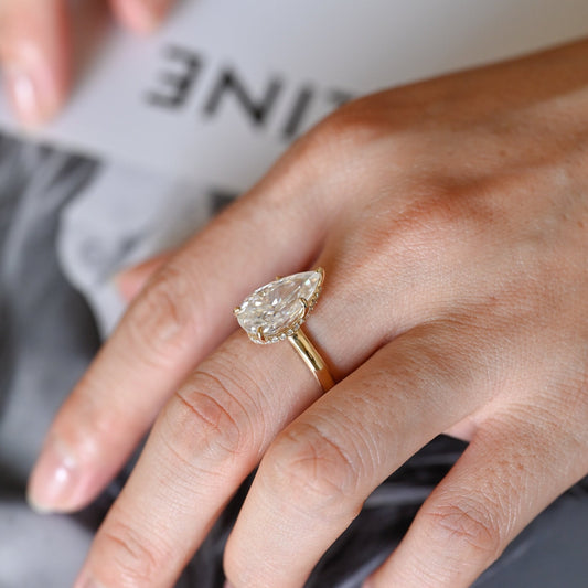 1.0 CT Pear Cut Hidden Halo Moissanite Engagement Ring