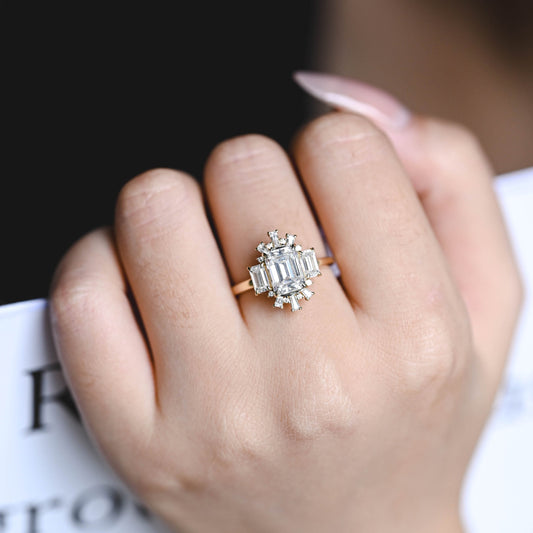 2.5 CT Emerald Cut Cluster Moissanite Engagement Ring