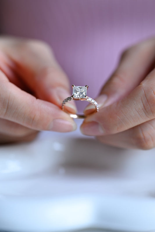 2.5 CT Princess Cut Pave Moissanite Engagement Ring
