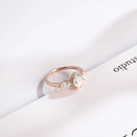 3.0 CT Oval Cut Halo Moissanite Engagement Ring