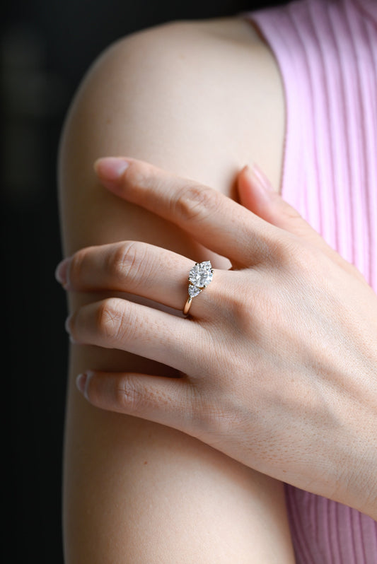 2.5 CT Round Cut Three Stone Moissanite Engagement Ring