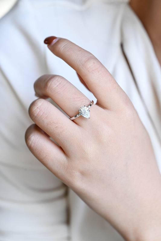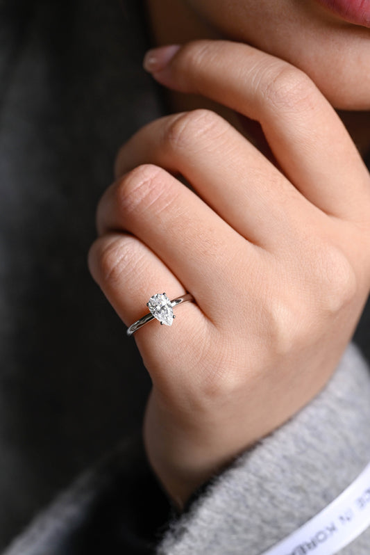 1.0 CT Pear Cut Solitaire Moissanite Engagement Ring