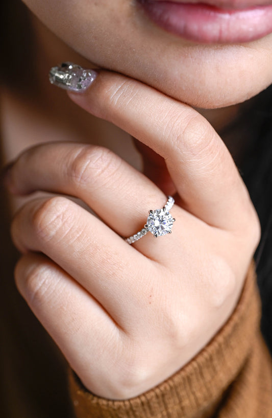 1.5 CT Round Cut Half Pave Moissanite Engagement Ring