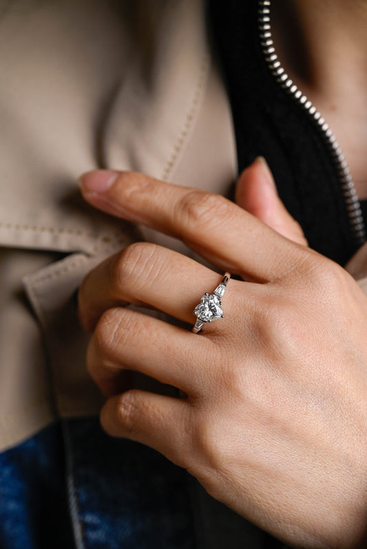 2.0 CT Heart Cut Three Stone Moissanite Engagement Ring