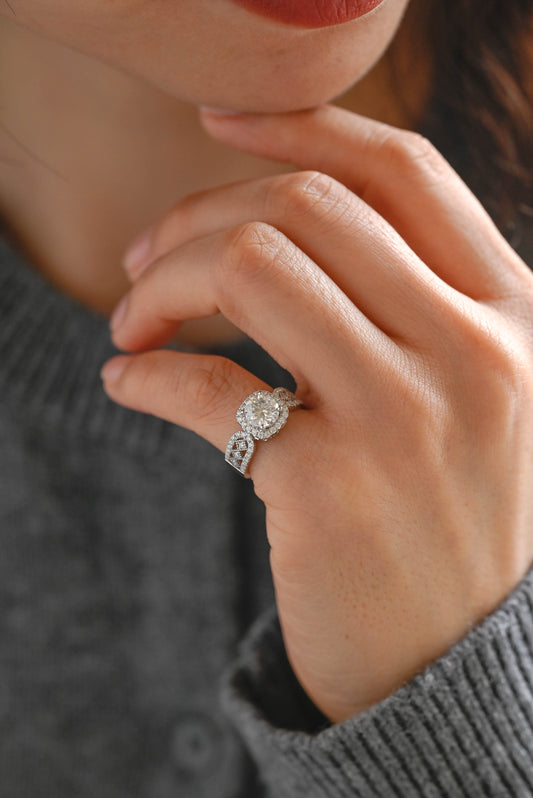 1.0 CT Round Cut Halo Moissanite Engagement Ring