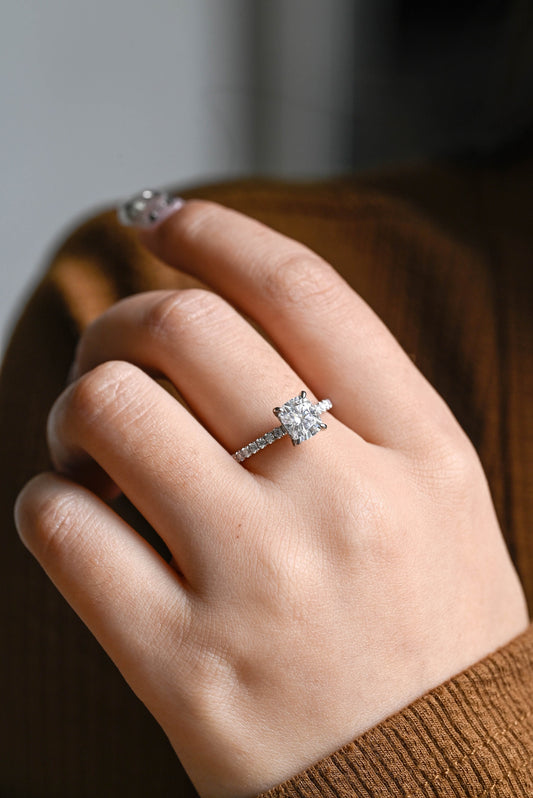 1.22 CT Cushion Cut Hidden Halo Moissanite Engagement Ring