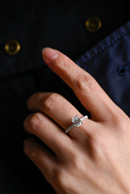 1.5 CT Emerald Cut Hidden Halo Moissanite Engagement Ring