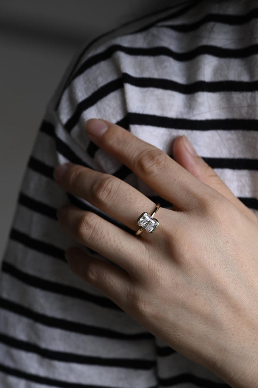 2.5 CT Radiant Cut Half Bezel Moissanite Engagement Ring
