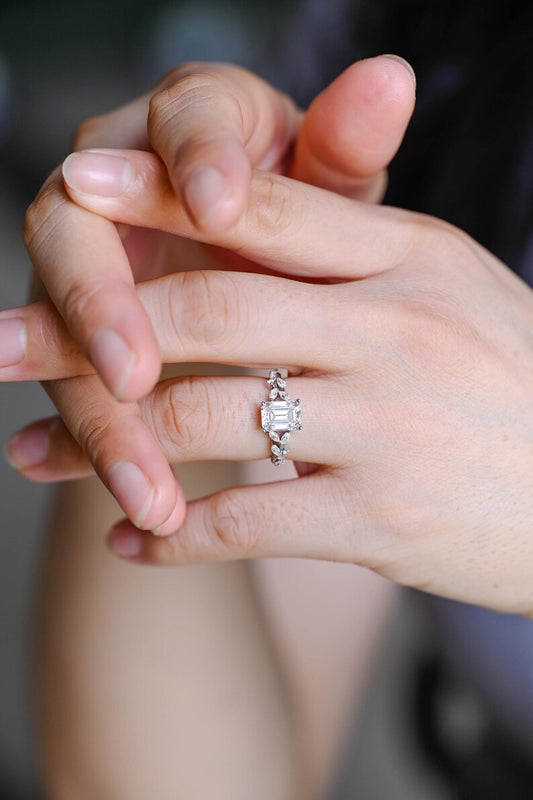 2.0 CT Emerald Cut Leaf Moissanite Engagement Ring