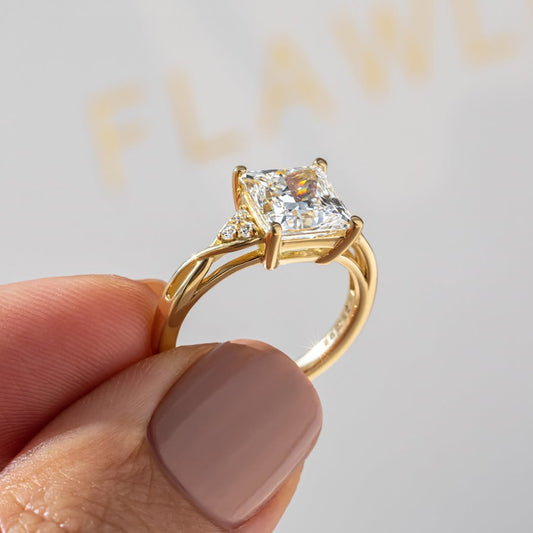 2.70 CT Princess F/VS1 CVD Diamond Vintage Style Engagement Ring