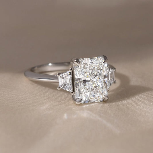 3.0 CT Radiant F/VS2 CVD Diamond Three Stone Style Engagement Ring