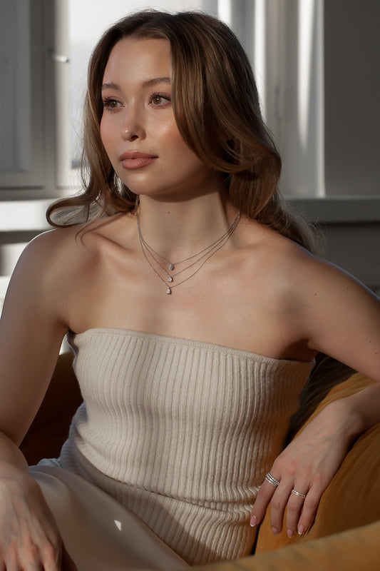 This collection celebrates modern femininity with a classic touch – featuring dazzling diamond solitaires, intricate bands, and breathtaking teardrop pendants. Whether it's for a special occasion or just because you deserve it, these elegant pieces are designed to make you feel powerful, poised, and radiant.