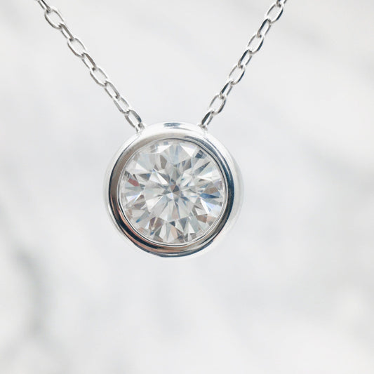 Ophelia- 3.0 CT Round Bezel Moissanite Necklace