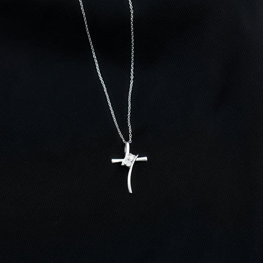 Aria- 0.18 TCW Round Bypass Cross Moissanite Necklace
