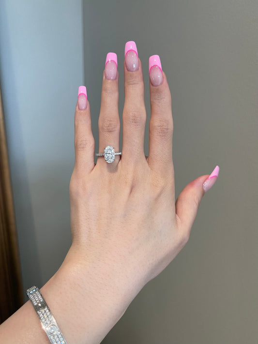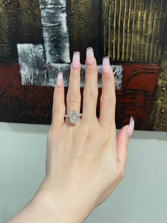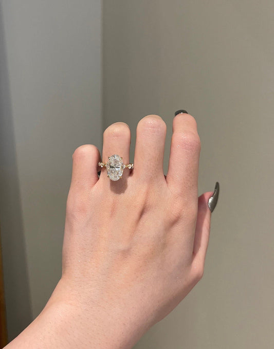 Jerry- 7.0 CT Oval Hidden Halo Dainty Moissanite Ring