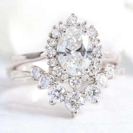 Aria- 1.20 CT Oval Moissanite Halo Bridal Ring Set