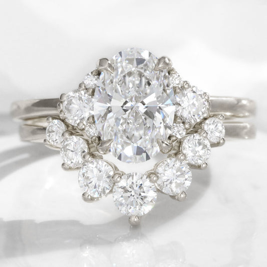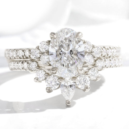 Evelyn- 1.20 CT Oval Moissanite Cluster Bridal Ring Set