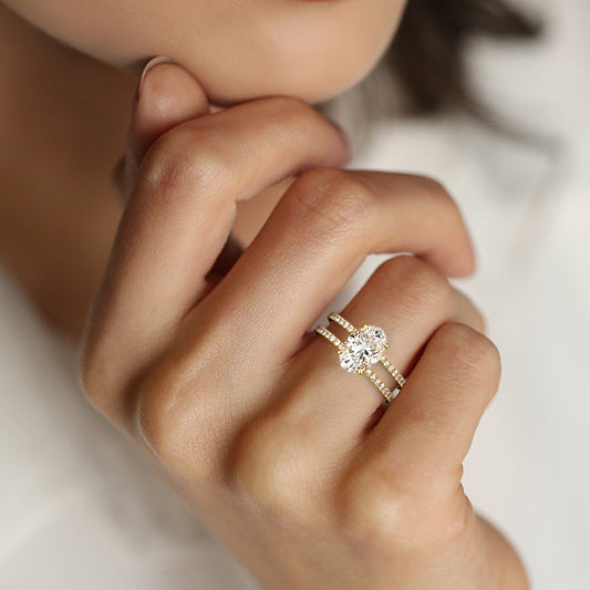 Olivia- 1.0 CT Oval Moissanite Pave Bridal Ring Set