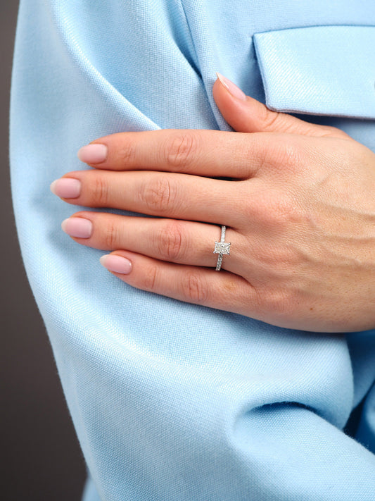 Nadine- 0.70 CT Radiant Hidden Halo Pave Moissanite Ring